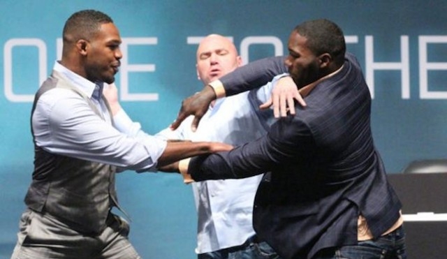 В рамках мероприятий, предварявших турнир UFC 184, в Лос-Анджелесе состоялось представление участников главного боя турнира UFC 187, запланированного на 23 мая этого года. Чемпион UFC в полутяжелом весе Джон Джонс и претендент на титул Энтони Джонсон поднялись на сцену, встали друг к другу лицом и обозначили острую личную неприязнь.