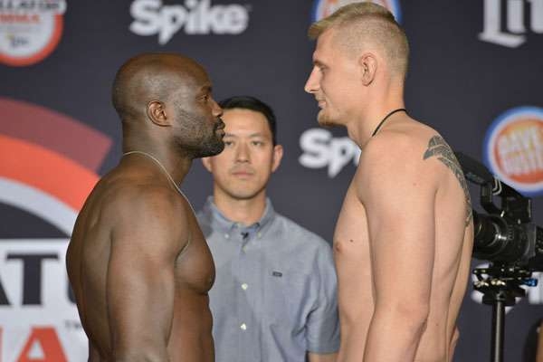 Завтра рано утром по московскому времени в Мулвейне (штат Канзас, США) состоится турнир Bellator 139, который будет транслироваться в прямом эфире на Spike TV. Главным событием мероприятия станет бой между бывшим бойцом UFC тяжелого веса Чейком Конго и бывшим чемпионом Bellator Александром Волковым. Пока же состоялась церемония официального взвешивания участников, все из которых, кроме ЭммануеляСанчеса и Марсио Наварро уложились в отведенный лимит. А Александр Волков на пару килограммов перевесил своего оппонента.