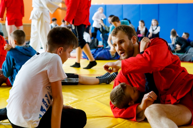 «Болевой прием на ногу», «подворот на бросок», – вот с такими терминами и навыками познакомились ребята за недолгое время, проведенное с чемпионом.