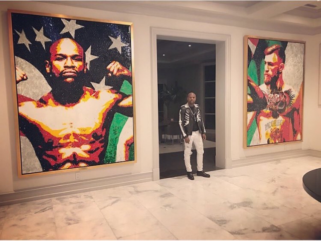 Одним из самых главных выгодоприобретателей стал Флойд Мейвезер, заработавший этим боем более 300 миллионов долларов. И вот во вторник на этой неделе Мейвезер разместил в своих социальных аккаунтах фотографию стены одной из комнат своего огромного дома в Беверли Хиллз. И мы видим, что большую часть этой стены занимают два огромных портрета, на одном из которых изображён Мейвезер, на другой никто иной, как МакГрегор.