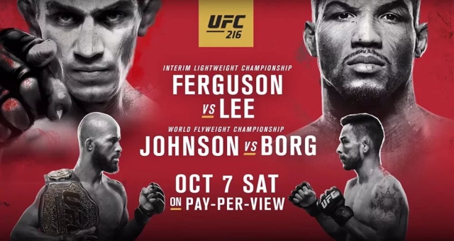 Сегодня рано утром в Лас-Вегасе закончился турнир UFC 216, в рамках которого были разыграны два чемпионских титула UFC. Временным чемпионом в лёгком весе стал Тони Фергюсон, задушивший Кевина Ли. А доминирующий в наилегчайшем весе уже в течении длительного времени Деметриус Джонсон, сделав рычаг локтя Рэю Боргу, побил рекорд непрерывных защит титула в UFC, проведя одиннадцатую защиту титула подряд.