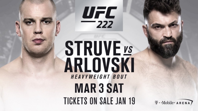 Компания UFC объявила сегодня о том, что турнир UFC 222 в Лас-Вегасе получит матч ветеранов тяжелого веса UFC. Бывший чемпион UFC в тяжелом весе Андрей Арловский сразится с голландцем Стефаном Струве.