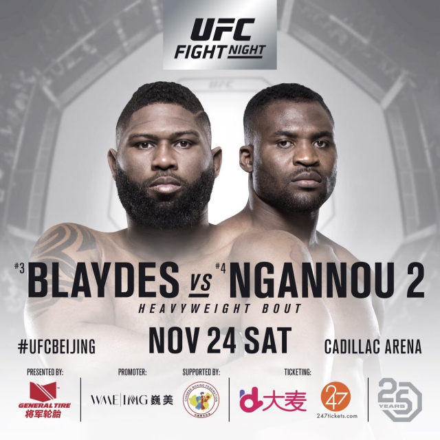 Большой дебют компании UFC в Пекине, который состоится 24 ноября, будет иметь соответственное большое главное событие. В соответствии с последними новостями, хедлайнером карты боёв будет матч-реванш в тяжелом весе между Кёртисом Блейдесом и Фрэнсисом Нганну. Вчера утром компания UFC официально объявила этот бой через свой аккаунт в Twitter.