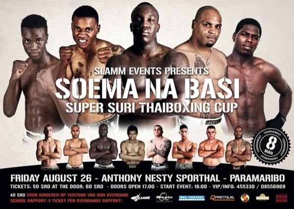 Главным событием турнира в Парамарибо станет восьмерка по тайскому боксу в весовой категории до 70кг. Также в программе 2 супербоя по тайскому боксу и 2 поединка по смешанным единоборствам.