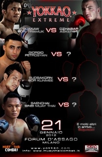 Сегодня стало известно, что Джорджио Петросян заключил контракт c компанией Yokkao на участие в турнире по правилам тайского бокса Yokkao Extreme, который состоится 21 января 2012 года в Милане.