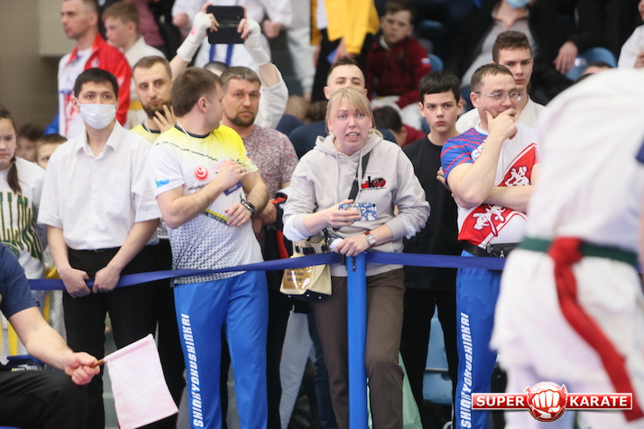 2 мая 2021 года в Москве, в Московском Центре Боевых Искусств, состоялось первенство России по синкёкусинкай в разделах кумитэ и ката. Смотрите фотографии продолжения поединков в возрастных категориях 12-13 и 14-15 лет. Как всегда, особенно радуют своей непосредственностью болельщики и тренеры спортсменов.