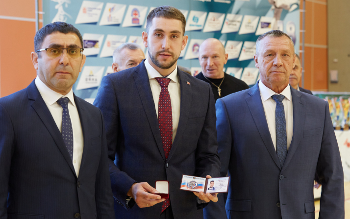 На торжественном открытии соревнований Шихан Юрий Шабанов вручил удостоверение и нагрудный знак почётного спортивного звания «Заслуженный мастер спорта России» по киокусинкай Назару Насирову.