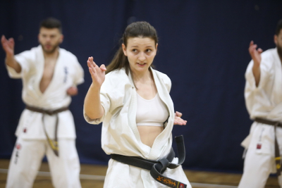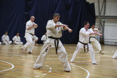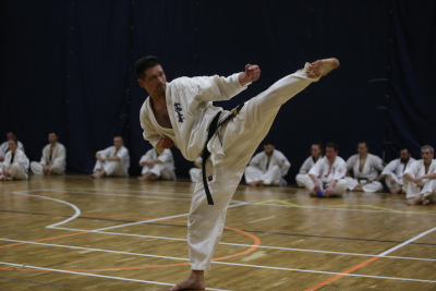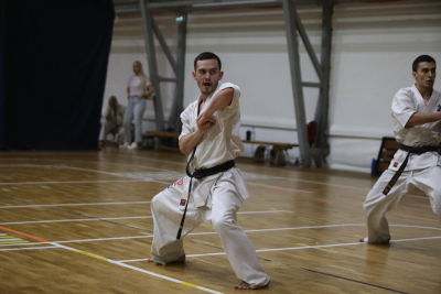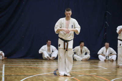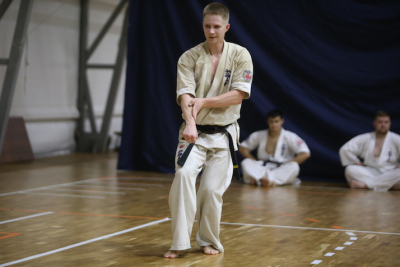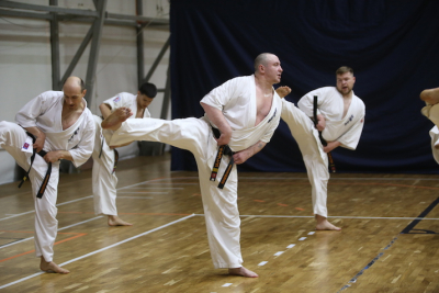 Фотоотчет посвящённый первой части дан-теста, где участники показывали владение техникой, уровень физической подготовки и мастерство выполнения формальных комплексов.