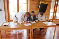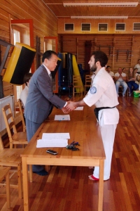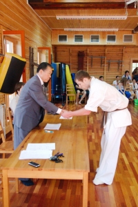 В последний день школы состоялся дан-тест, на котором успешно прошли испытания: Хасай Магомедов (Москва) на 2 Дан, а Алексей и Николай Паршины (Воронеж) на 1 Дан.