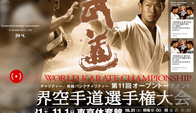 31 октября 2015 года в Токио (Япония) стартует 11 абсолютный Чемпионат мира по шинкиокушинкай. Оба дня турнира будут транслироваться онлайн. Для удобства читателей SK, трансляция будет размещена и на нашем сайте. Но так как разница с Японией шесть часов (по Москве), то просыпаться в эти дни придется в 3.00. Так что - НЕ СПАТЬ!