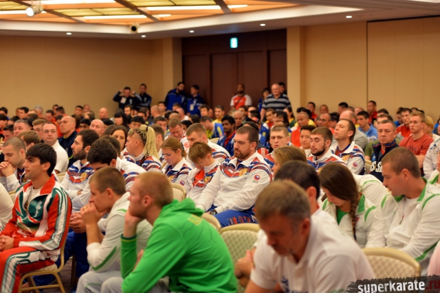 30 октября 2015 в Токио в преддверии стартующего завтра 11 абсолютного Чемпионата Мира по Шинкиокушинкай состоялось мандатная комиссия и собрание представителей и участников турнира. Специальный фотокорреспондент Елена Смирнова подготовила свой отчет с предварительного дня турнира.