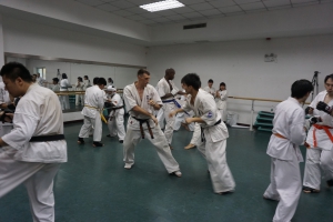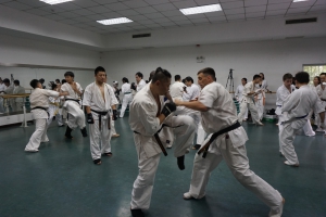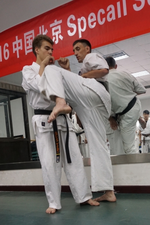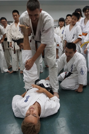 Почти 50 человек принимало участие на тренировках. В день прилета в Пекин вечером прошла первая тренировка, она была ознакомительная, ребята были в основном начинающие, ученические пояса. Очень приветливые, внимательно слушали и старались.