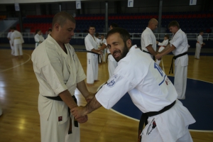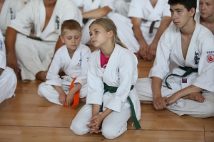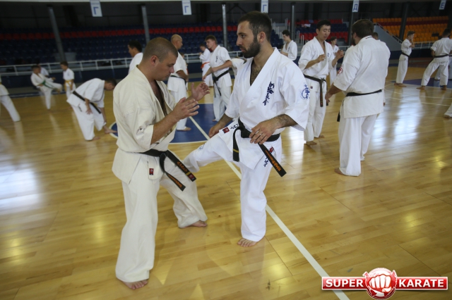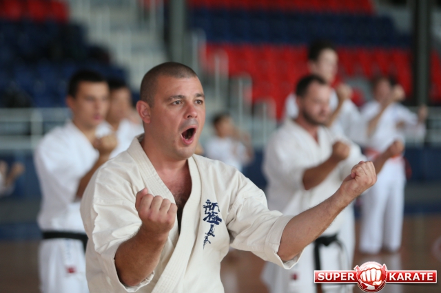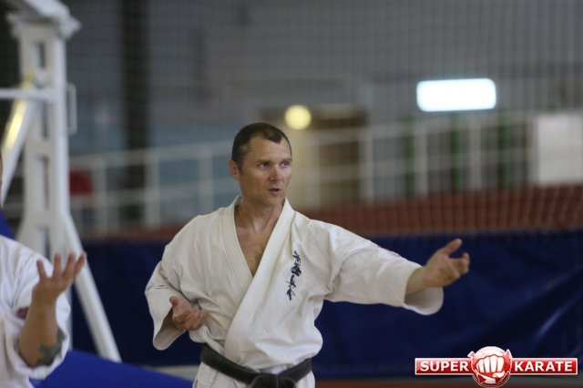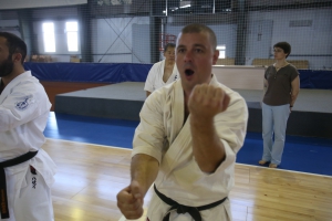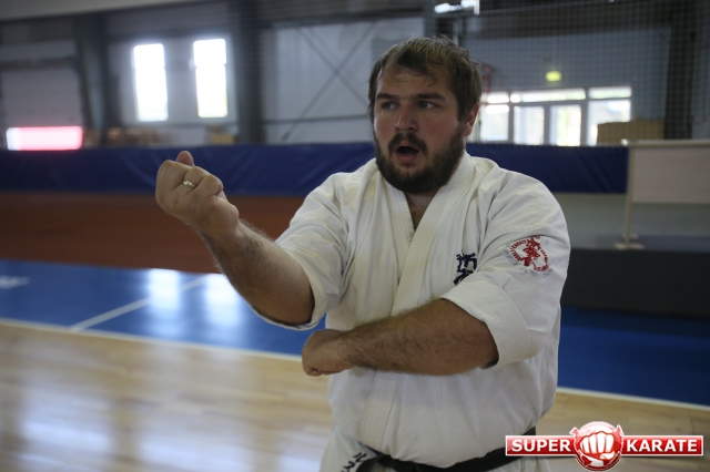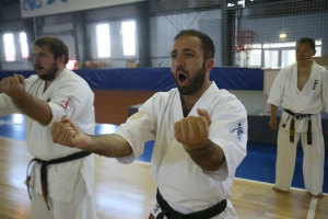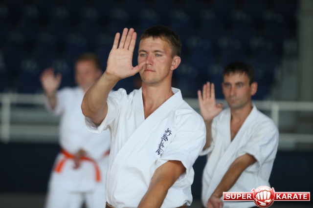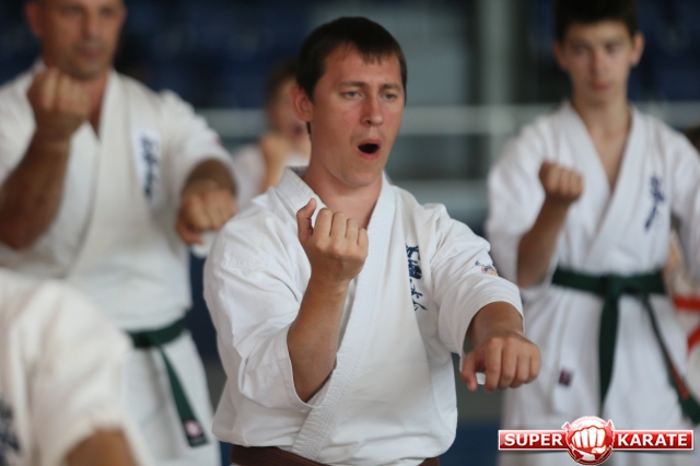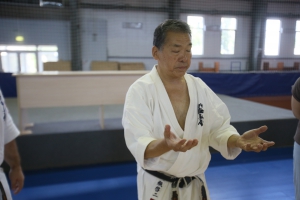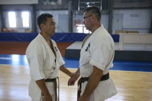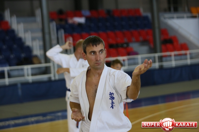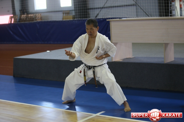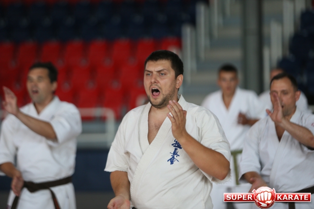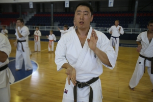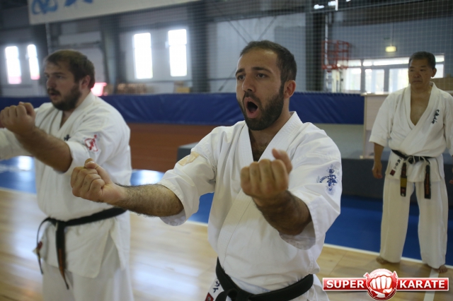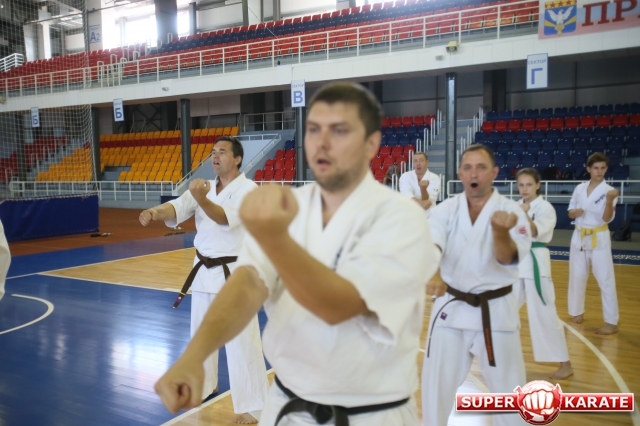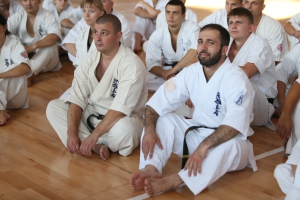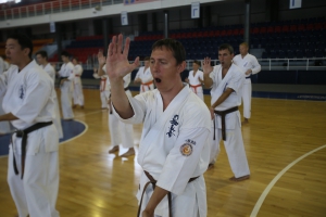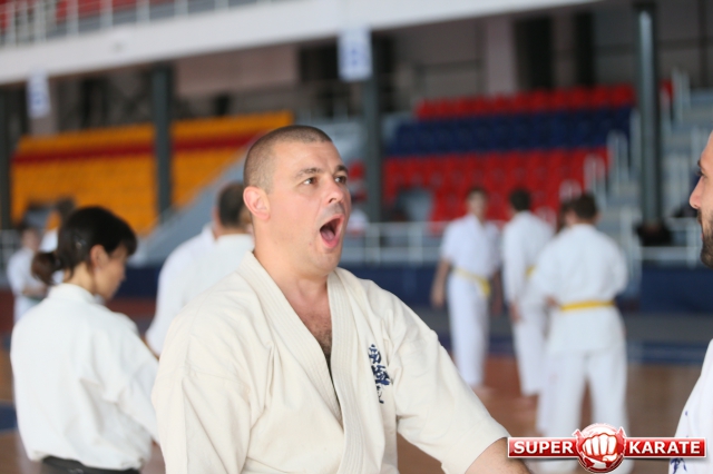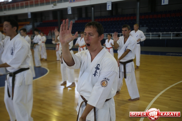 Две тренировки первого дня были посвящены работе с дыханием. Шихан объяснил, как правильно делать ибуки, что такое фукусики и гяку фукусики, и как правильно должна работать диафрагма, чтобы становиться при этом центром силы каратеки.