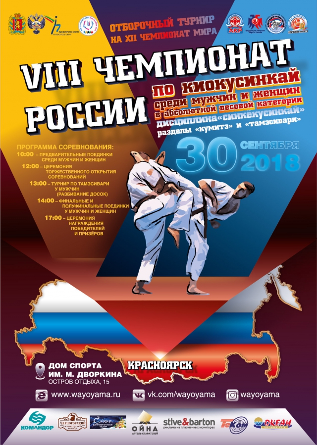 30 сентября 2018 года в Красноярске стартовал VIII Чемпионат России по шинкиокушинкай среди мужчин и женщин в абсолютной весовой категории.